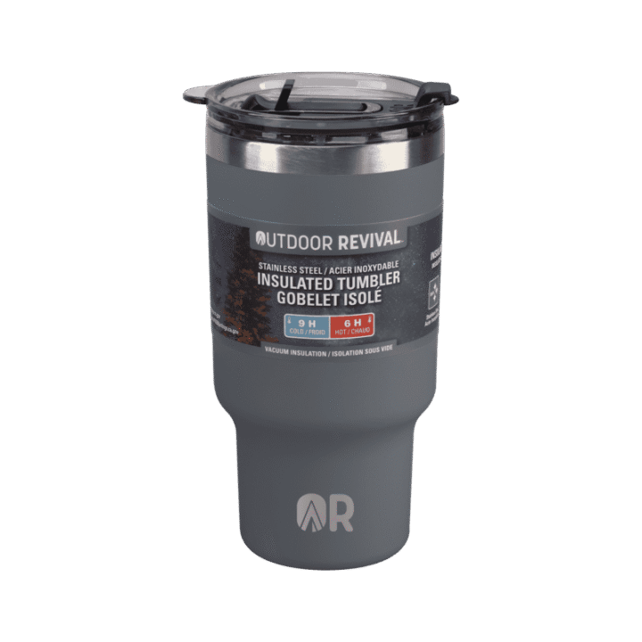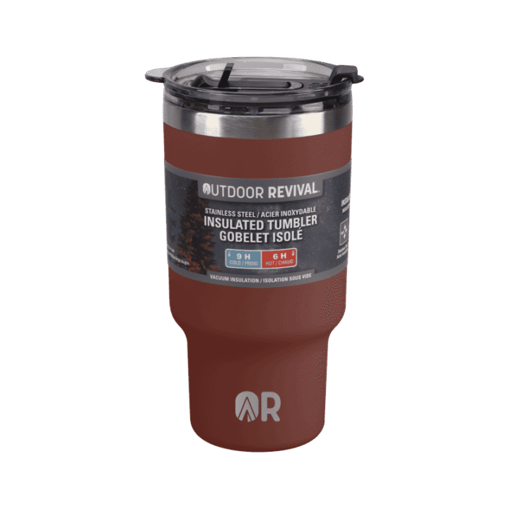 Combining functionality with style, the Outdoor Revival™ 30 OZ Stainless Steel Insulated Tumbler is a rugged adventurer ready to tackle any beverage challenge. Constructed with triple-insulated technology and a double walled design, this 100% stainless steel tumbler is perfect for sipping on your favorite beverage. Whether it’s a steaming cup of coffee at your campsite or a refreshing iced tea in your backyard, this tumbler keeps cold drinks cold for 9 hours and hot drinks hot for 6 hours.